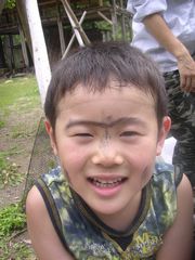今日のメインの遊びは池遊び。その前に、ちょっと畑で草むしり。息子を含めチビッコ達はちょっと働いただけで、どこかへ行ってしまった。